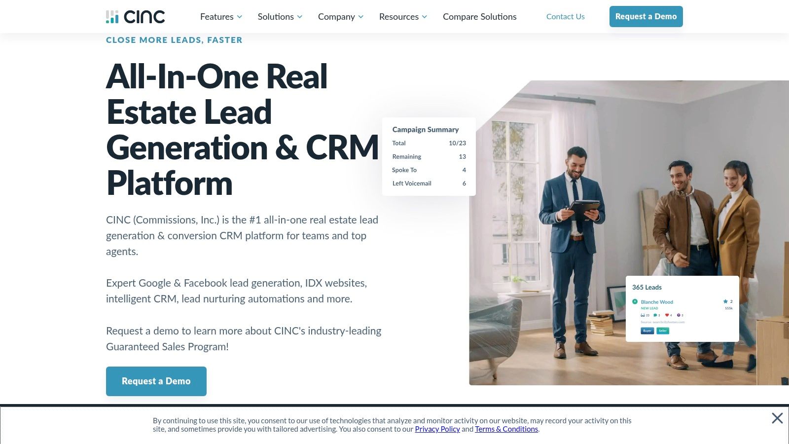 CINC is an enterprise-level real estate platform that combines a powerful CRM, IDX website, and aggressive lead-generation programs into a single, cohesive system. It is specifically engineered for high-volume teams and multi-office brokerages that thrive on paid lead funnels and require extensive support. The platform’s main advantage is the tight integration between its lead generation and CRM, which ensures a seamless workflow from prospect capture to conversion.