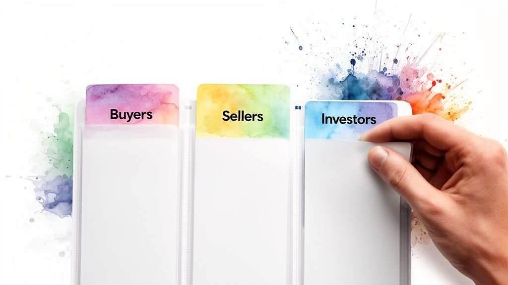 - Potential Buyers: This group can be broken down even further. Are they first-time homebuyers, luxury buyers, relocation leads, or folks looking for a specific property type like a condo or single-family home? Each needs a different conversation.