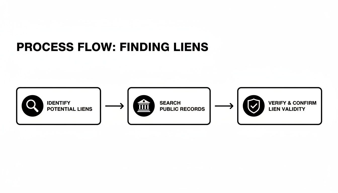 To find any lien on a property, you have to dig into public records. This search happens at the county level, and you’ll be spending your time sifting through documents from the County Recorder of Deeds, the Tax Assessor, and various local court dockets. The process really boils down to grabbing a few key property identifiers—like the Assessor's Parcel Number (APN)—and then cross-referencing that info across different government offices to see what claims pop up.