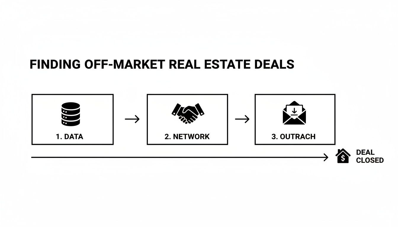 Finding great off-market real estate isn't about luck. It’s about creating a system to spot opportunities that everyone else is missing. While your competitors are stuck scrolling through the same public listings on the MLS, you can build your own private pipeline of deals by tapping into specific, often overlooked, data sources and human networks.