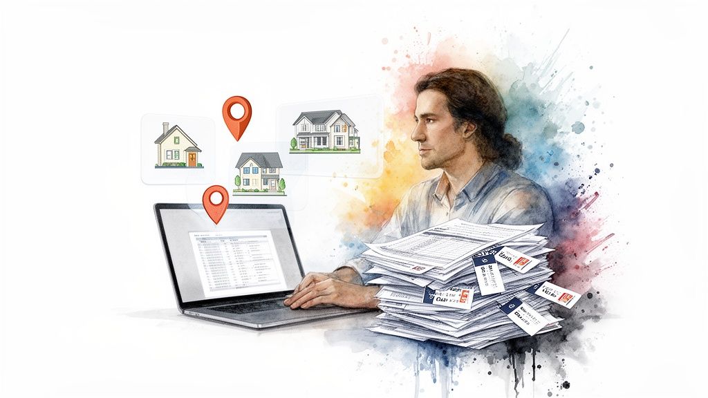 This hyper-local data gives you an almost unfair advantage. While other investors are waiting for a Zillow alert, you’re already having a conversation with the owner. To really grasp how this works, check out the power of predictive analytics for real estate. When you bring AI into the mix, specialized tools like an AI Real Estate Property Analyzer can dive even deeper.