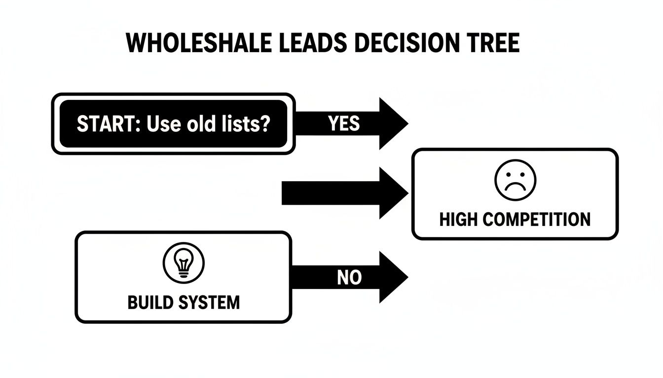 Buying lists from the big national data companies is how a lot of wholesalers get their start. It's easy. But it's also a trap that keeps you small. Those lists are often old, inaccurate, and—worst of all—sold to hundreds of other investors in your exact market. You end up in a race to the bottom, competing on price with dozens of others who are calling the exact same tired leads.