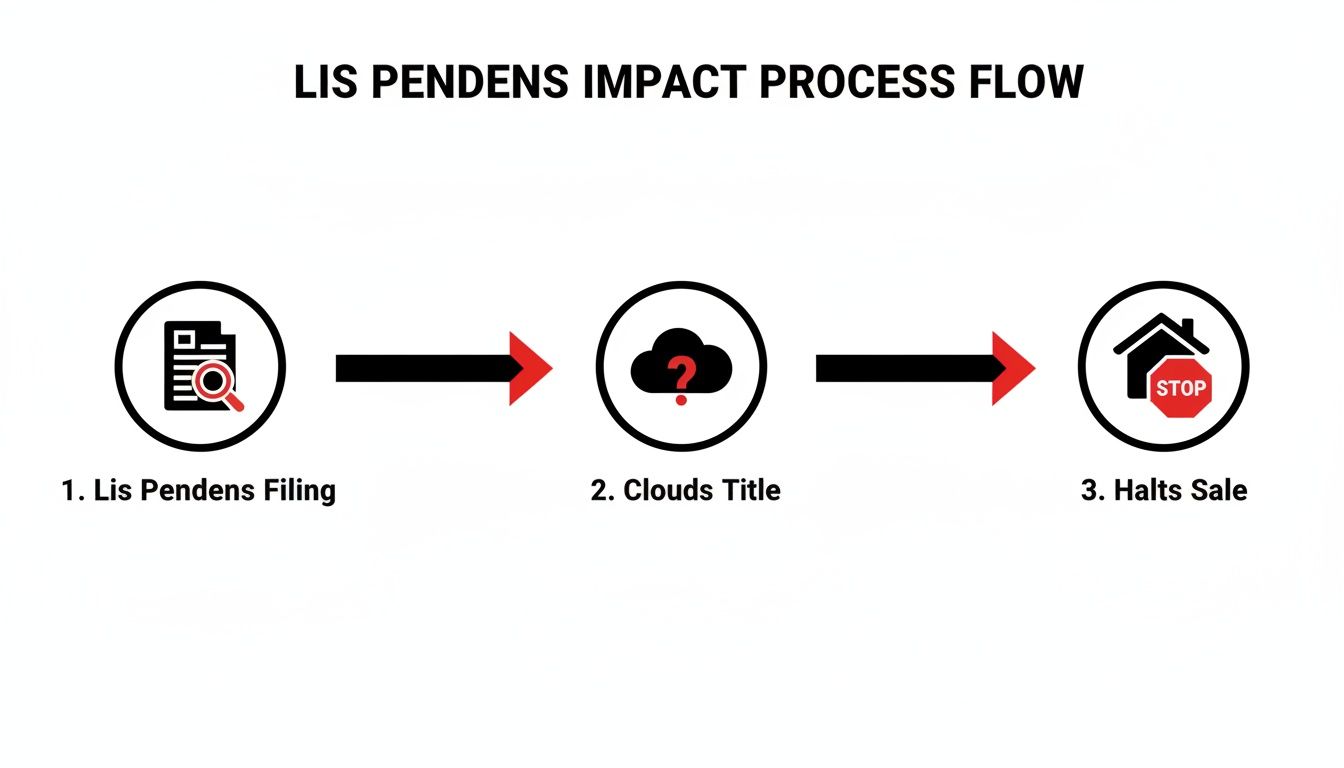 Once a lis pendens hits the public record, it sets off a powerful chain reaction that can bring any normal real estate activity to a dead stop. In industry speak, it casts a "cloud on title," a serious defect that throws the property's legal ownership into question.